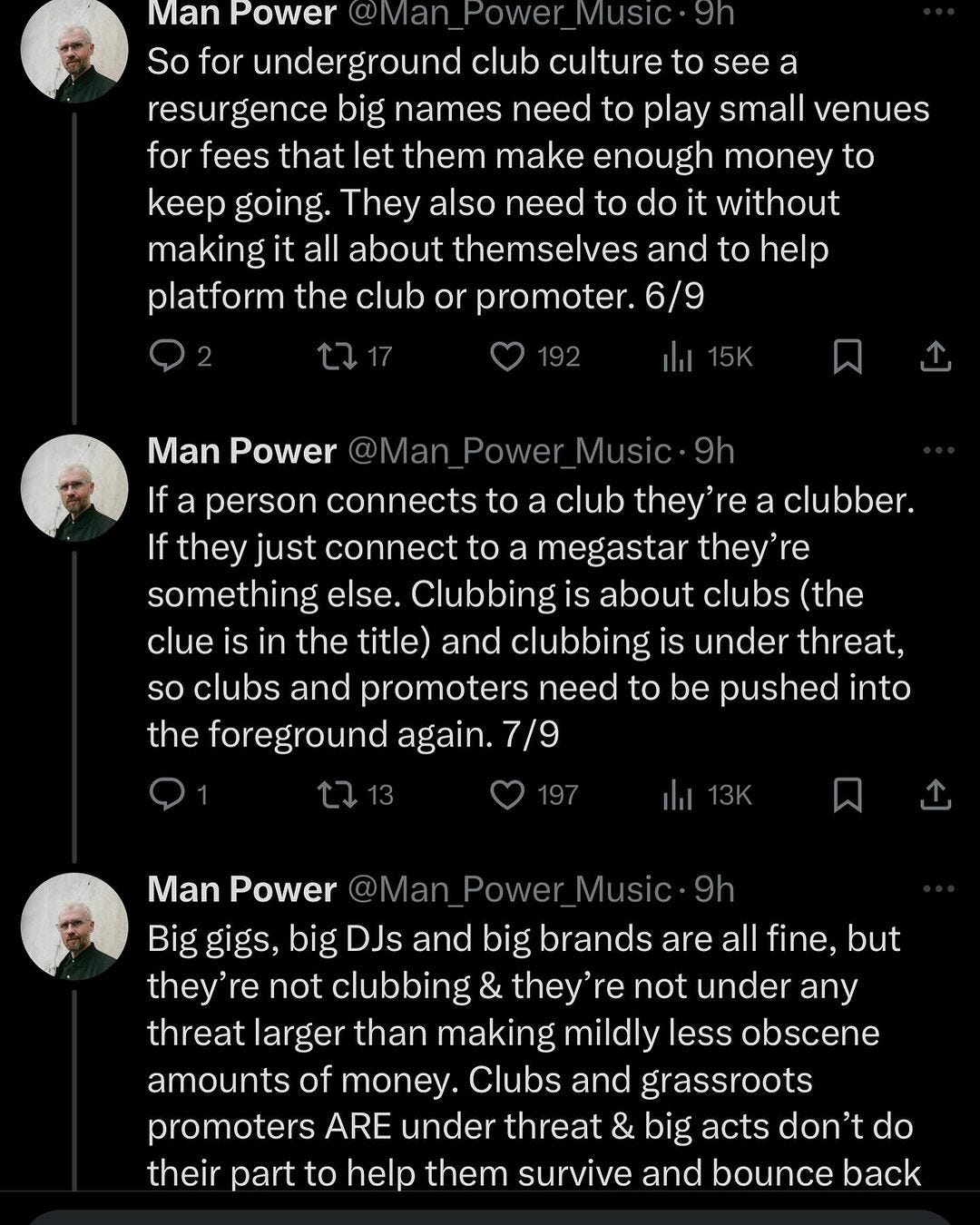 It’s an interesting viral thread DJ Man Power got going on. The UK went from 1500 clubs to 500 clubs in a flash and 5 clubs per WEEK close down there now. These are fragile spaces, clearly under threat. In Berlin specifically through wealthy landlords owning hundreds of properties, doubling the rent and effectively forcing an end to Watergate and Wilde Renate recently. In Amsterdam we still seem to do OK, but as a club owner I can only hope that bigger names will keep on lowering fees to play the small grassroots venues every now and then. It’s where the next generation of DJs needs to blossom and the spaces where you can get your first full dancefloors or closing sets as an upcoming DJ are very rare.